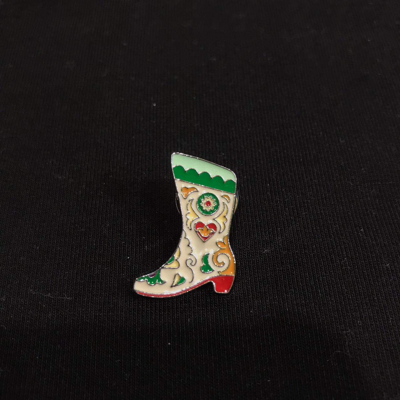 Значок металл сапожок Rk01-05-002-01 бежевый - серебро 17х25 мм
