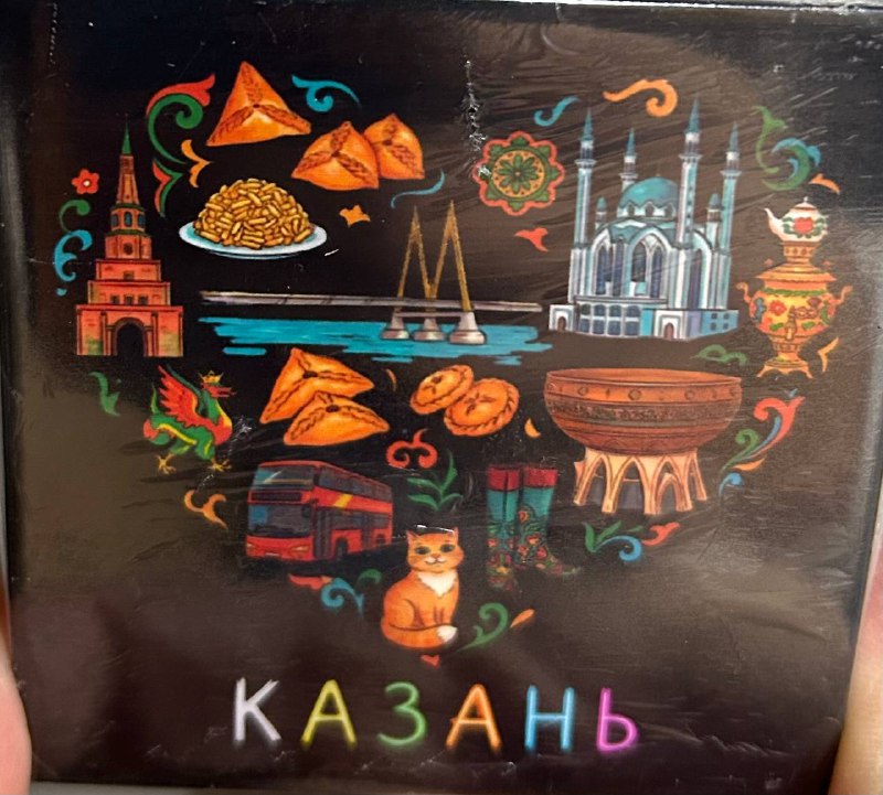 Магнит закатной 65х65мм Казань сердце черное