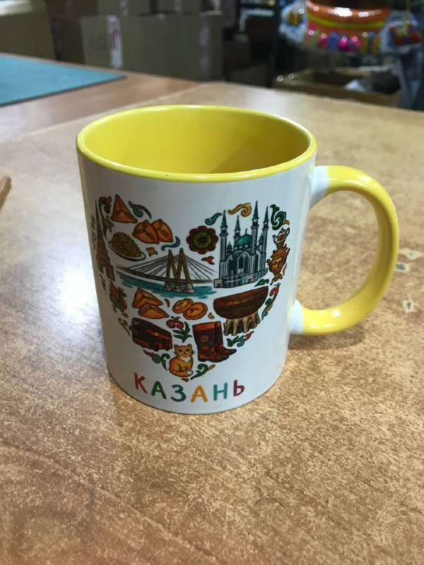 Кружка керамика Казань сердце 330мл желтая внутри и желтая ручка