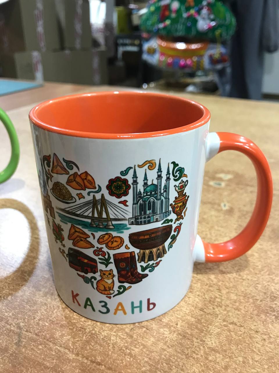 Кружка керамика Казань сердце 330мл оранжевая внутри и оранжевая ручка