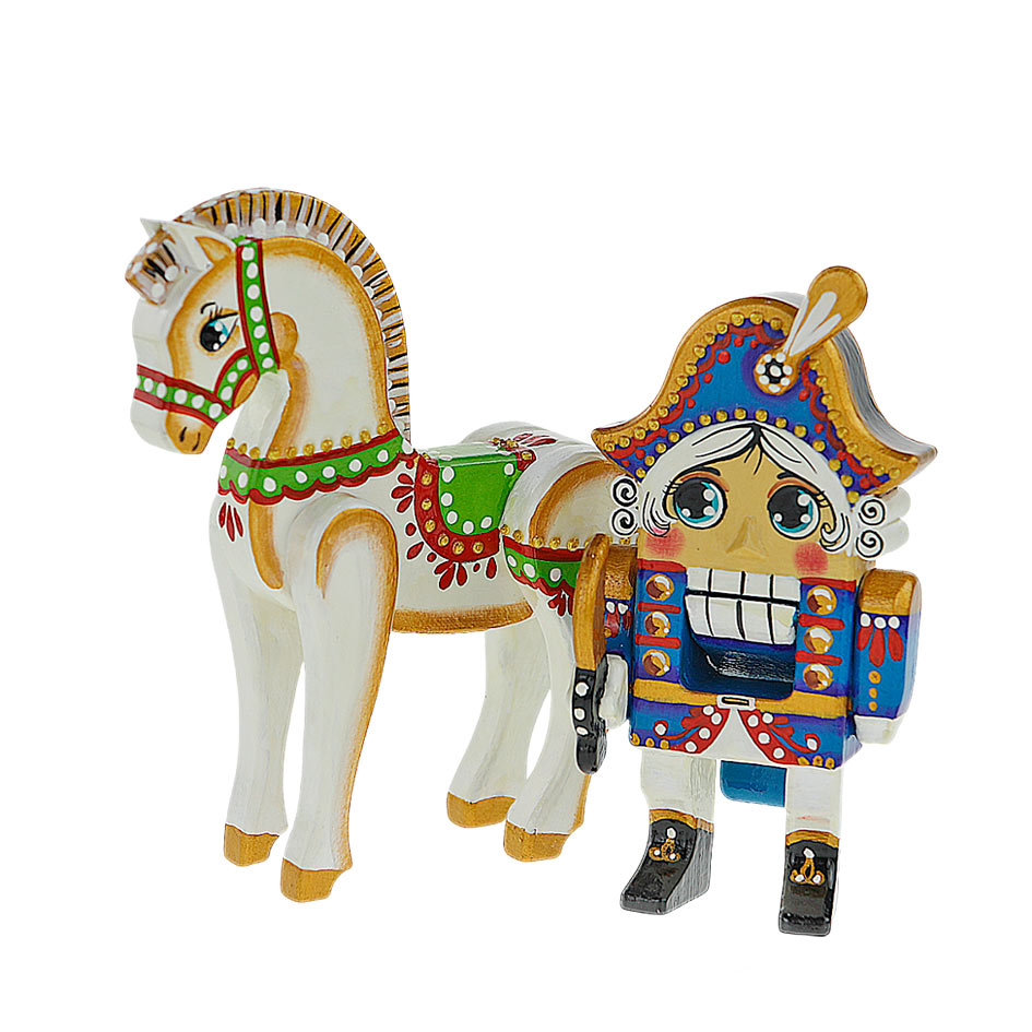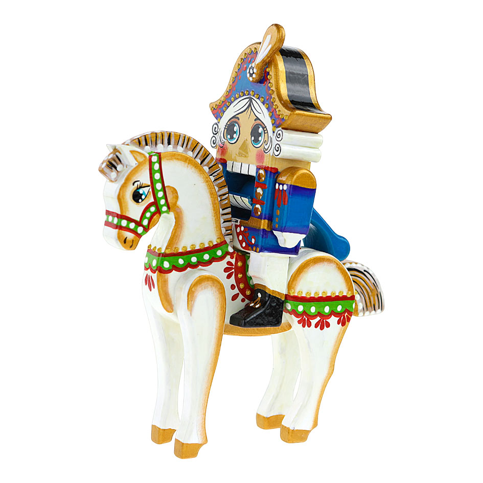 Игрушка дерево Щелкунчик на лошади 19 см синий