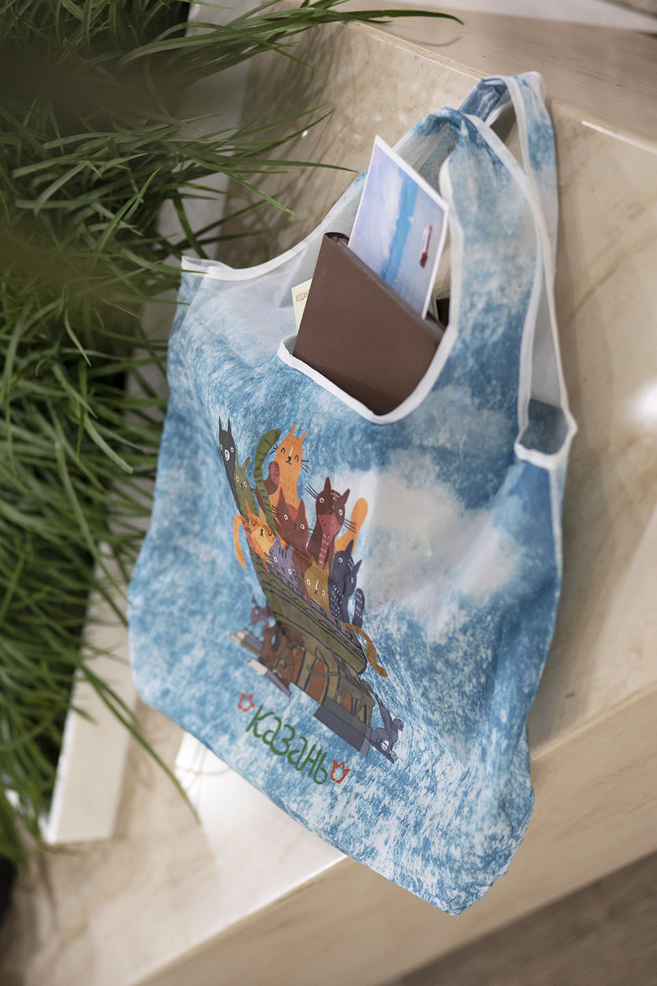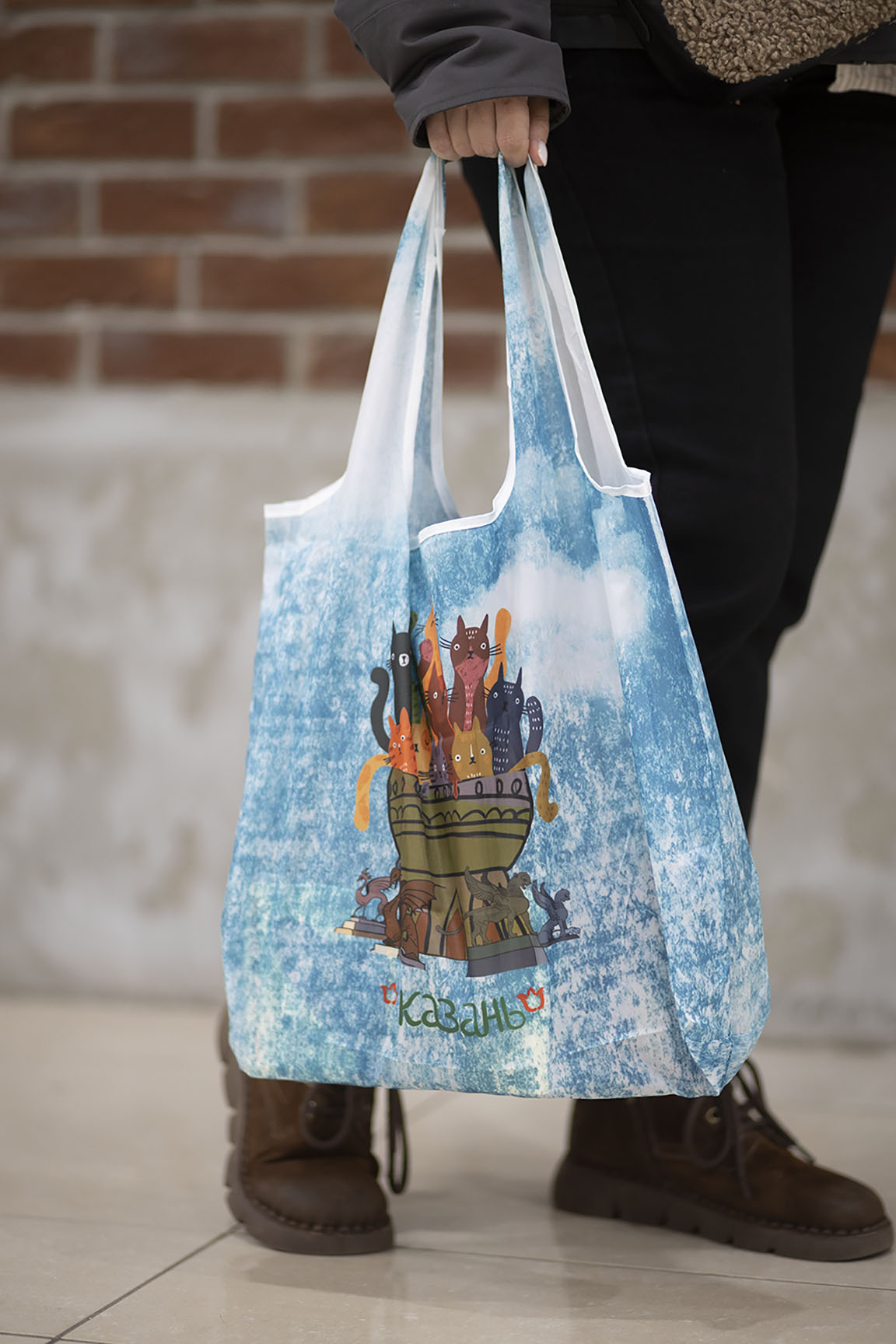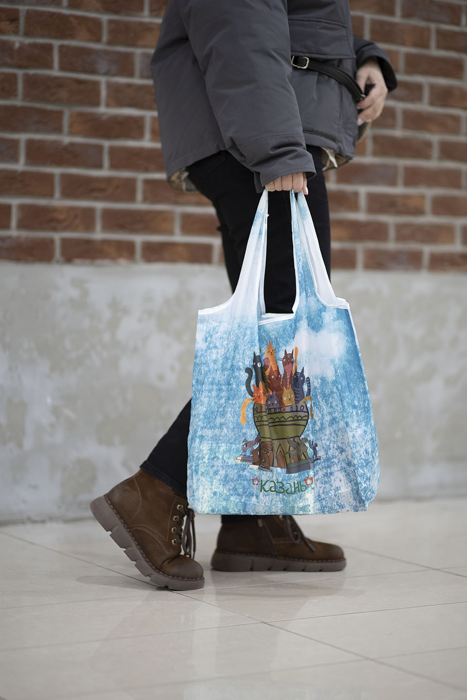Сумка складная Казань Коты в чаше 40х45 см длина ручки 50 см