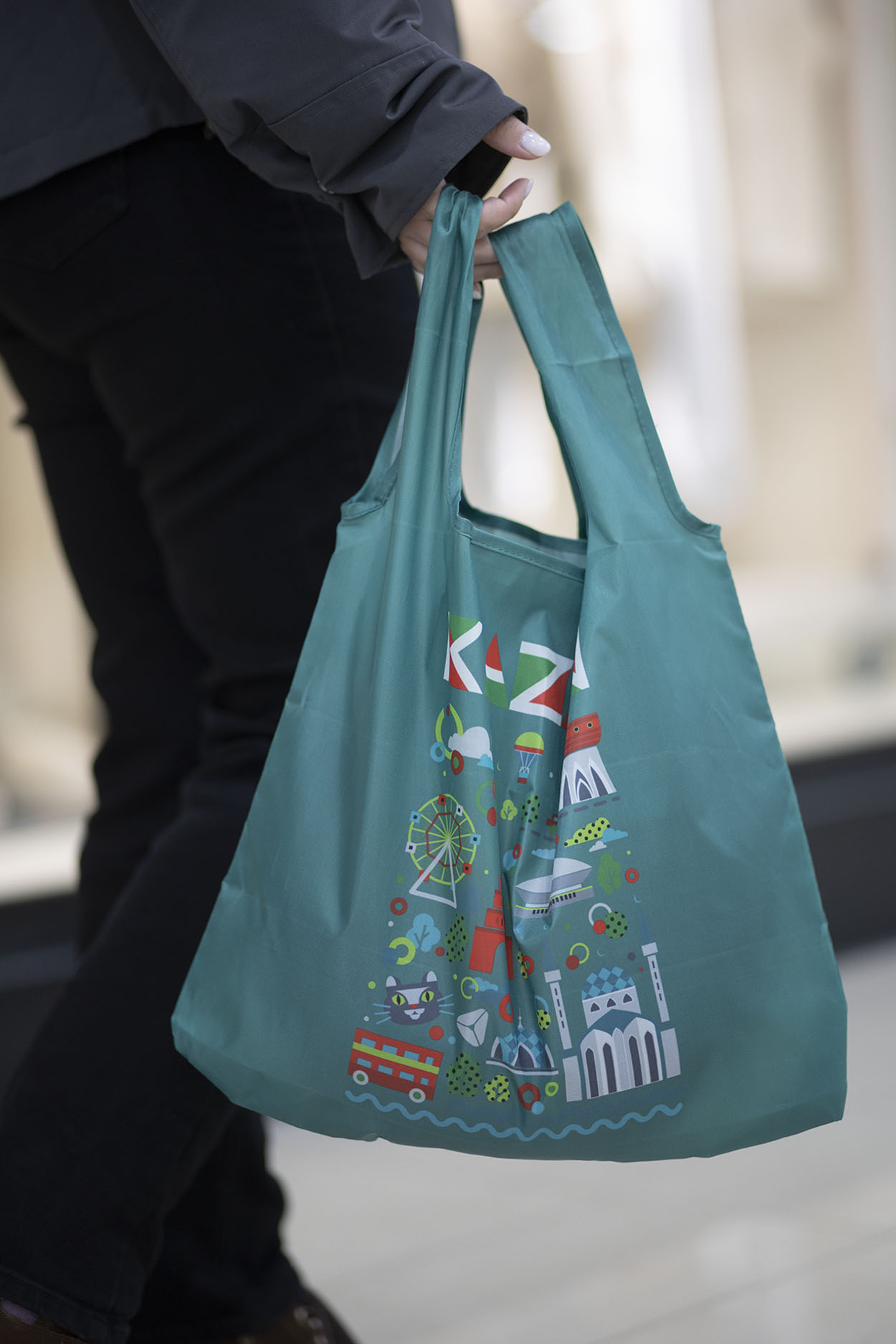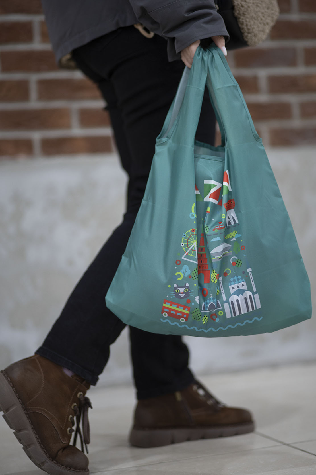 Сумка складная Казань коллаж 38х32 см длина ручки 34 см