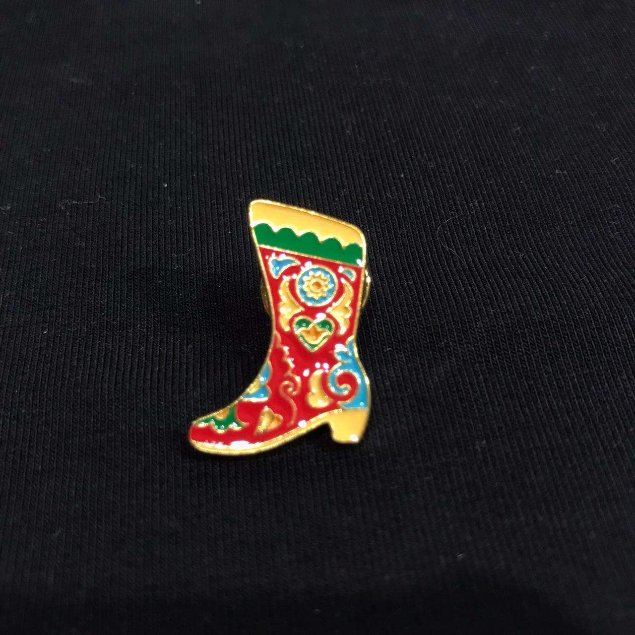 Значок металл сапожок Rk01-05-003-01 красный - золото 17х25 мм
