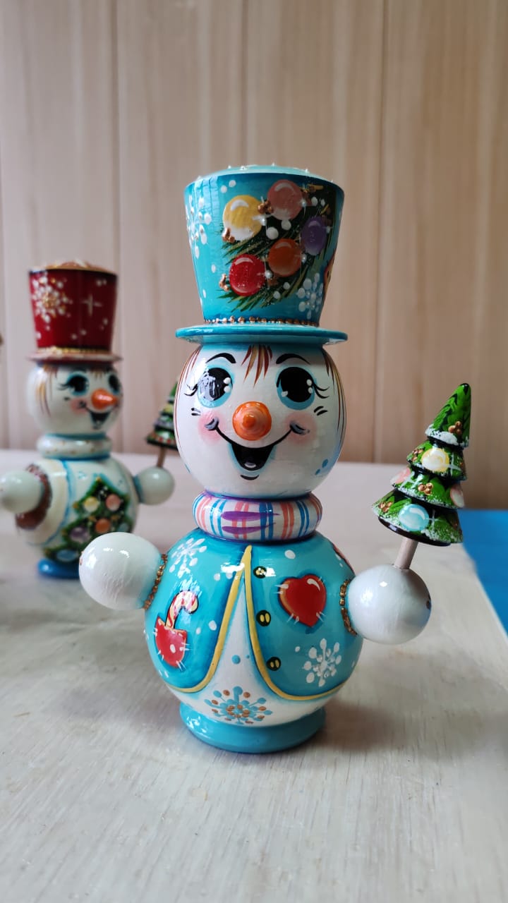 Игрушка дерево Снеговик с сердцем 19 см