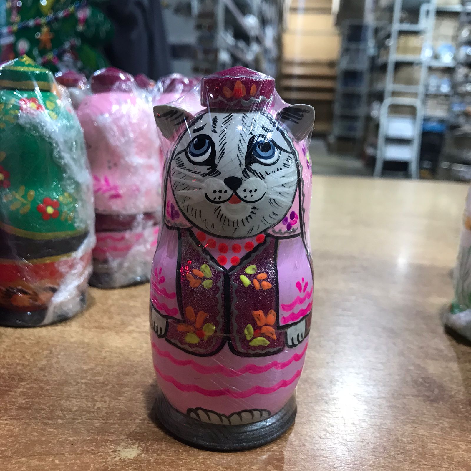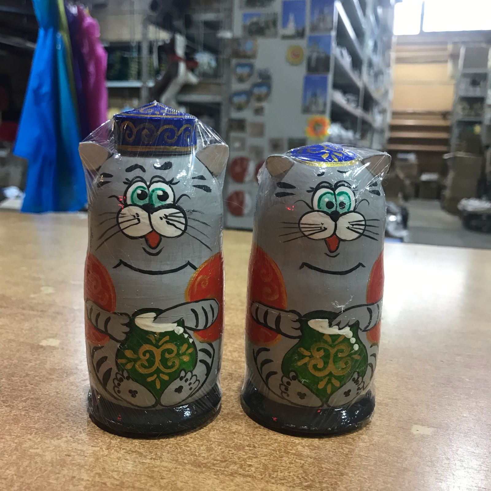 Матрёшка Кот в тюбетейке 3м 12 см девочка серая