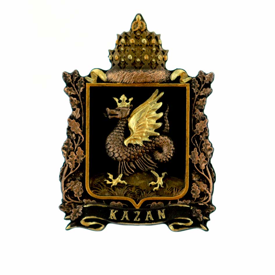 Магнит барельеф 6х8см Герб Казани чёрное золото_10