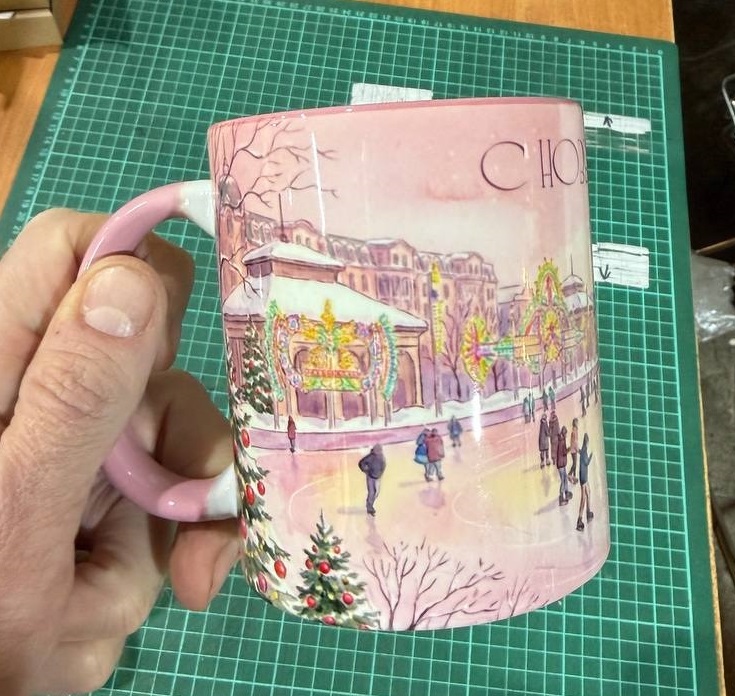 Кружка керамика каток С новым годом 330мл розовая ручка и розовая внутри