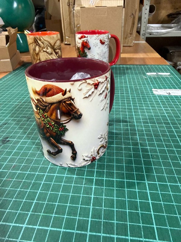 Кружка керамика Конь коричневый 330мл бордовая внутри и бордовая ручка