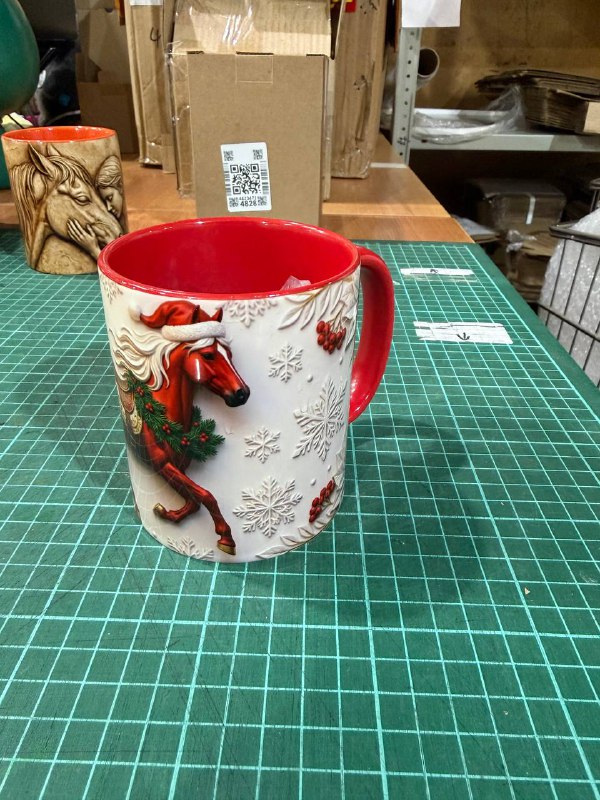 Кружка керамика Конь красный 330мл красная внутри и красная ручка