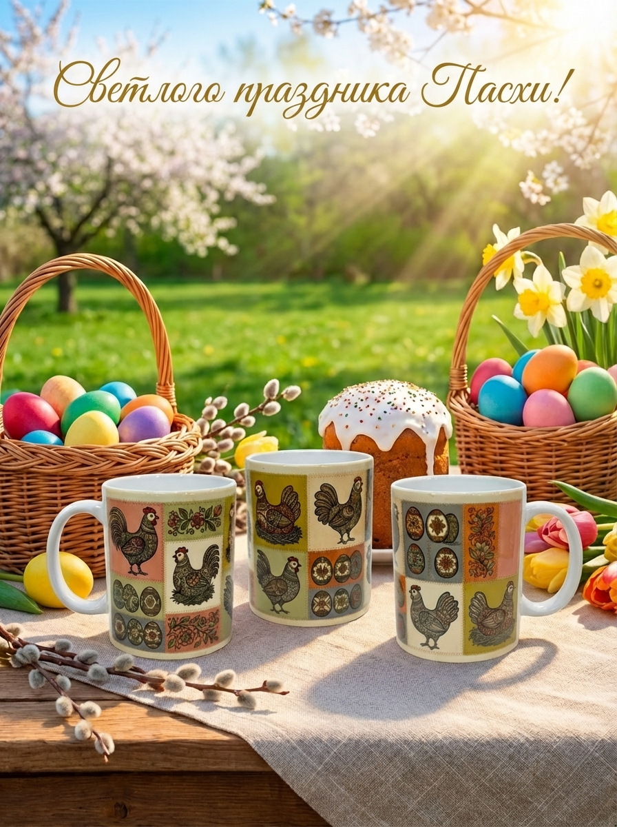 Кружка керамика Пасха курочки пэчворк