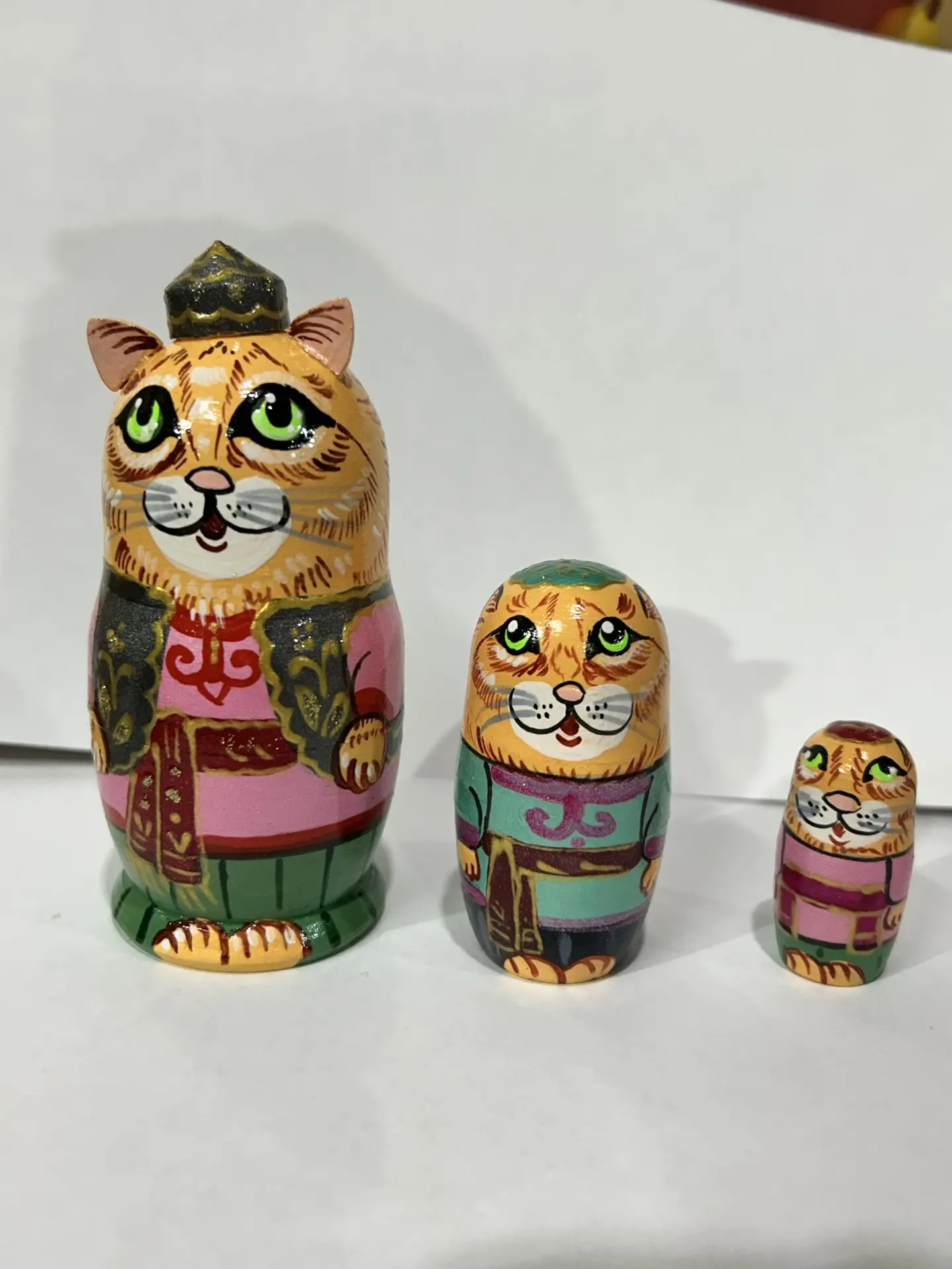 Матрёшка Кот в тюбетейке 3м 12 см рыжий в розовой рубашке