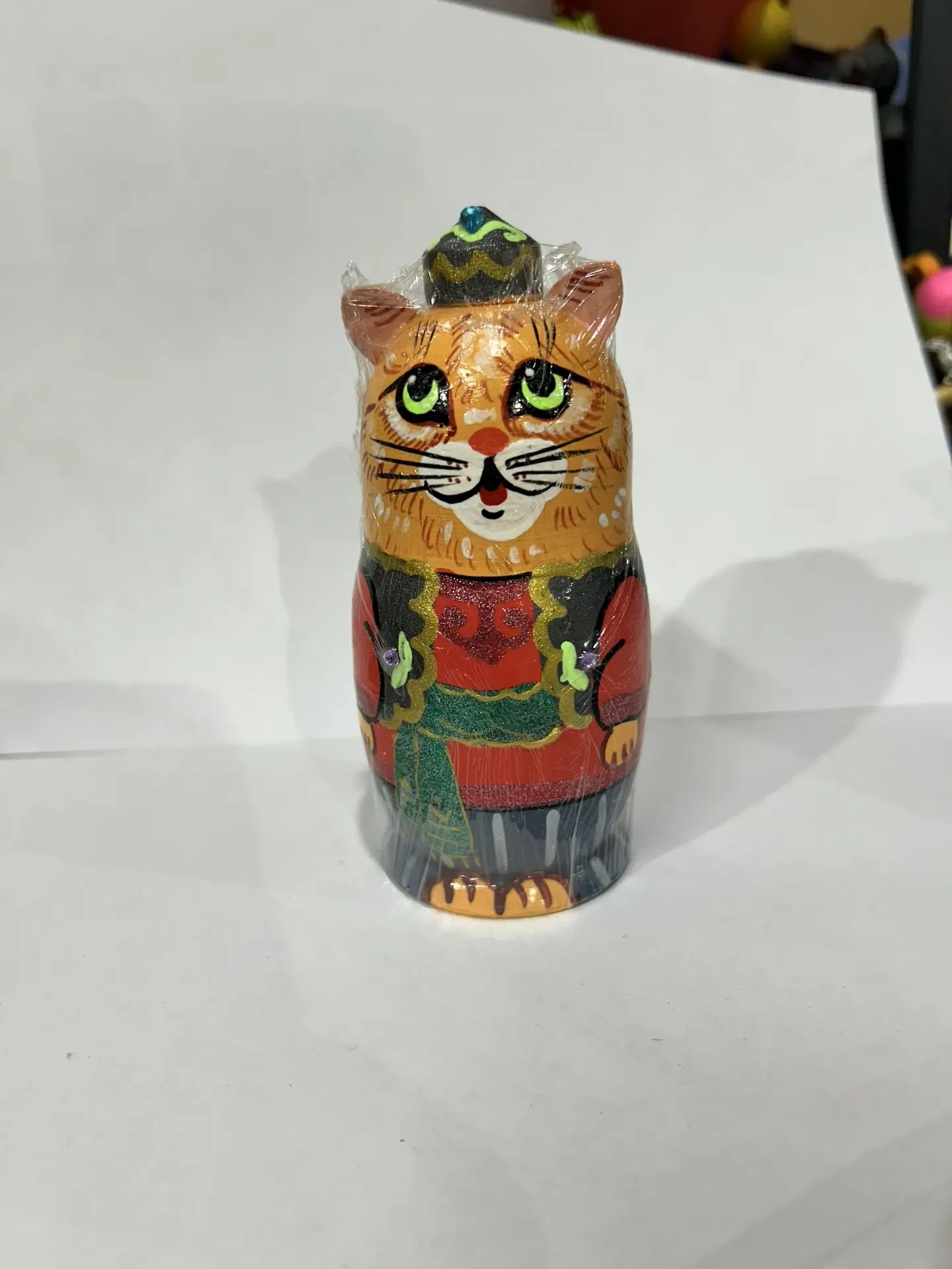 Матрёшка Кот в тюбетейке 3м 12 см рыжий в красной рубашке